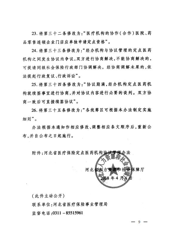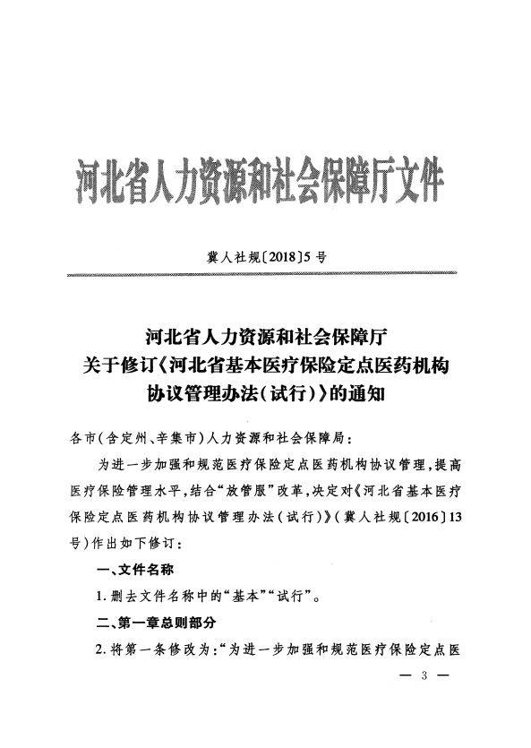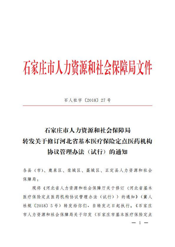 转发关于修订河北省基本医疗保险定点医药机构协议管理办法(试行)的通知